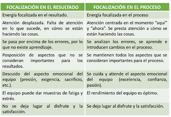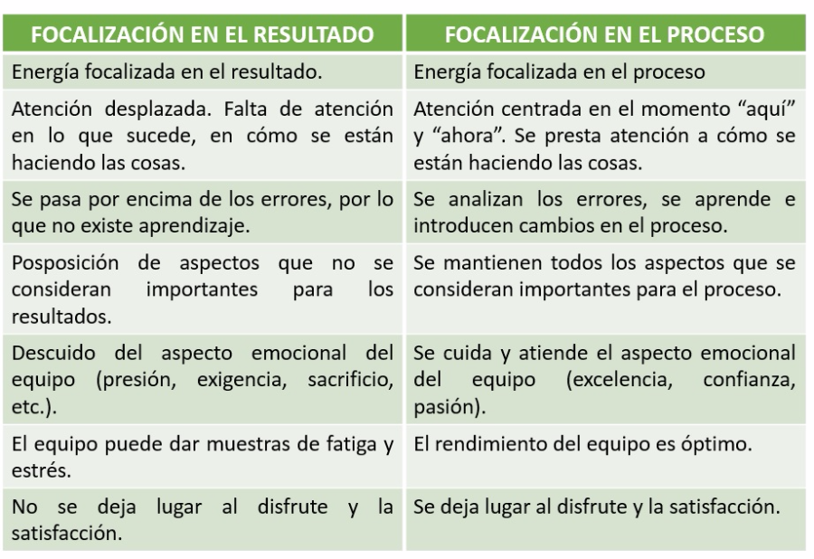 Poner foco en el proceso implica poner atención a cómo queremos organizarnos, cómo queremos hacer las cosas, qué valores necesitamos para conseguir el objetivo, qué clima emocional va a necesitar el equipo. Si mantenemos el foco en el proceso, los resultados llegarán por sí mismos.